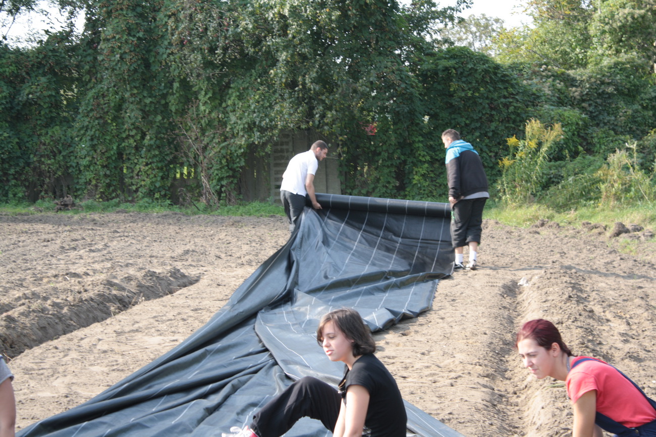 Przez ostatnie dwa tygodnie września nasi uczniowie pod nadzorem nauczycieli zawodu – w ramach zajęć praktycznych – zakładali plantację truskawek do realizacji treści programowych z zakresu upraw sadowniczych. Najcięższe prace, związane z uprawą i przygotowaniem gleby pod założenie plantacji, wykonali uczniowie klasy II TO i III ZSZ. Praca była bardzo dobrze zaplanowana i zorganizowana, dlatego efekty końcowe są zadowalające. Dodatkowym bodźcem i motywacją do działania była wspaniała słoneczna pogoda. By – już na początku uprawy – nie skazać się na niepowodzenie w zakresie ochrony plantacji przed chwastami, zastosowaliśmy przed sadzeniem sadzonek ściółkowanie terenu matą polipropylenową. Takie rozwiązanie ochroni rośliny przed zachwaszczeniem, zmniejszy straty wilgoci gleby w okresie letnim oraz zabezpieczy owoce przed nadmiernym zabrudzeniem podczas intensywnych opadów deszczu. Teraz pozostaje nam czekać na przyszłe zbiory.