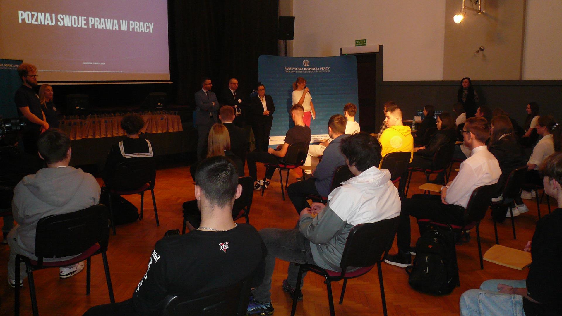 Po raz kolejny – pod patronatem Okręgowego Inspektoratu Pracy w Szczecinie – odbył się konkurs wiedzy o prawie pracy pod hasłem „POZNAJ SWOJE PRAWA W PRACY”, który jest skierowany do uczniów szkół ponadpodstawowych uczestniczących w realizacji programu edukacyjnego „Kultura bezpieczeństwa”. Konkurs jest jednocześnie formą propagowania tego programu oraz sprawdzianem jego efektywności. Celem konkursu jest popularyzowanie wśród uczniów szkół ponadgimnazjalnych wiedzy dotyczącej przepisów prawnej ochrony pracy, bezpieczeństwa i higieny pracy oraz legalności zatrudnienia i innej pracy zarobkowej. Zakres tematyczny konkursu obejmuje przepisy prawnej ochrony pracy, w tym przepisy dotyczące bhp, legalności zatrudnienia i innej pracy zarobkowej, ze szczególnym uwzględnieniem praw i obowiązków stron stosunku pracy.