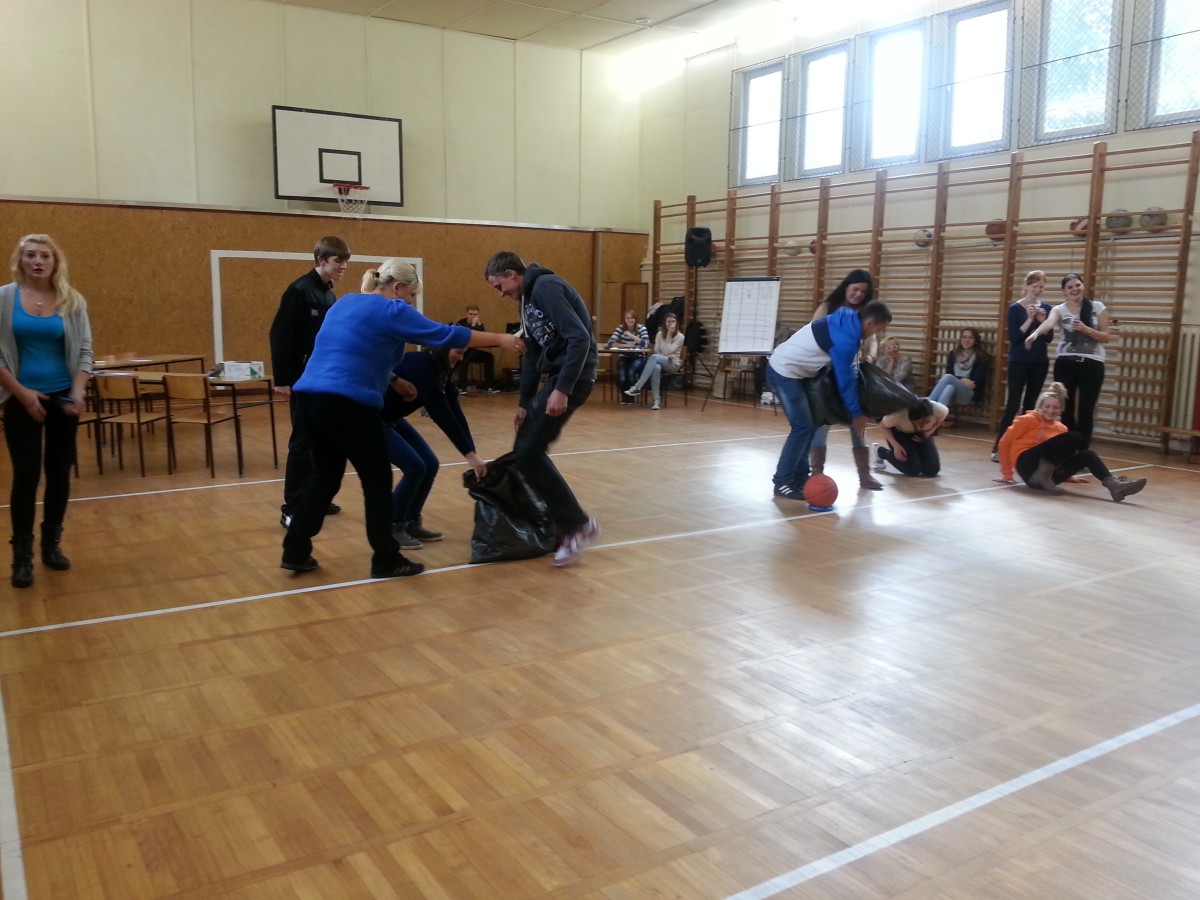 Wiele konkurencji było bardzo zabawnych, ale jednocześnie wymagających sprawności fizycznej i szybkiego refleksu. Wszyscy uczniowie zaliczyli test sprawnościowy, test na inteligencję, umiejętności rysowania portretu wychowawcy i śpiewania, a przede wszystkim – ze znajomości tradycji naszej szkoły. Przygotowania i prowadzenia tej imprezy podjęła się klasa 3TK. Oprawa muzyczna należała do Maćka. Przedstawicielki Samorządu Uczniowskiego – Ola i Daria – pilnie kontrolowały, aby uczniowie czuli się dobrze. Bawiliśmy się pysznie! A już za miesiąc odbędzie się uroczyste PASOWANIE UCZNIÓW KLAS PIERWSZYCH, w trakcie akademii z okazji Święta Niepodległości.
