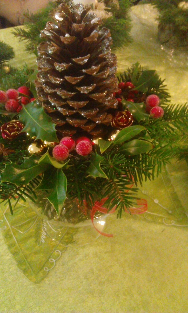 Na spotkaniu w grudniu panie wykonywały stroiki świąteczne z pięknie pachnącego igliwia jodły i świerka,